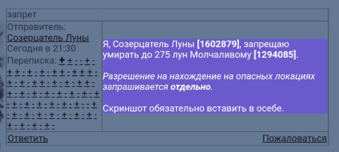 - рождён любить маму Весть и Папу Путю - любить луняшку - пытаюсь не умереть Мне нельзя!(Запрет) - - - - -