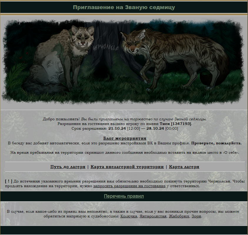 Разрешение на посещение и участие в мероприятии (Чернолесье)