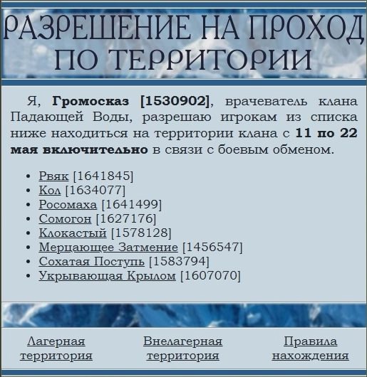 (тени)Котёнок - (тени)Оруженосец - (тени)Воительница - (тени) Старшая воительница - Переходящая - Воспитанница - Воительница