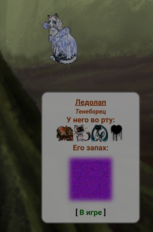 ЦИ в КПВ: Бильбо Бэггинс (переходящий) => Холодочек (Будущий страж) => Ледолесье (Страж) => Танец Холода (Страж) КИ: Танец Холода, Заставляющий Сердце Замирать От Восторга. Всегда рад новым знакомствам! В самой игре не первый раз. Есть душевой персонаж. Породили боты, но приняли под свой тёплый бок Ласкающая Обольстительница и Сладкостон. Есть любимое дитятко! Была моим надзирателем и отвечала на все вопросы во время ИС - Всполыхнувшая. Куратор и просто лапочка котик - Очарованный Борец. Обучал боям - Шёпот Полумесяца. Рассказала про все особенности территорию КПВ - Птицеловка. Помогли познать все прелести жизни стража - Мгновение и Трепетание Пера. На данный момент являюсь: • Наставником по территории. С радостью выдам вам урок или проведу экскурсию! • Воспитателем. Помогаю котятам освоиться в клане и просто стать отличным другом в юные годы! • Последователем. Служу Матери-Иволги! Птичье имя - Гаяенелсани Къ Венаину. Птицей-хранительницей же стал авантюристичный ястреб. | ⠀ | ![]() | ⠀ |