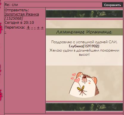 | | Ну здравствуй. Приступим сразу к делу? Для админов: я люблю посидеть с разных устройств и с разных точек Wi-Fi, поэтому не баньте, надеюсь на понимание. Приступим к моему персонажу: Родилась не помню у кого, но приютили милейшие Чёрный Карп и Иней. Очень много братосестёр, из них могу выделить: Тенекрада, Медвежонка, Шквала. Украл сердечко даже не спросив милашка Загадочный. Котят немного, но они все умнички, и если буду выделять всех, не останется места. Из друзей могу выделить: Изгиб, Горесть, Высокомерие, Рыжегривка. Цепочка имён: Молнелапочка - Глубинолапая - Глубина. Перейдём к личности человека, сидящего по ту сторону монитора.