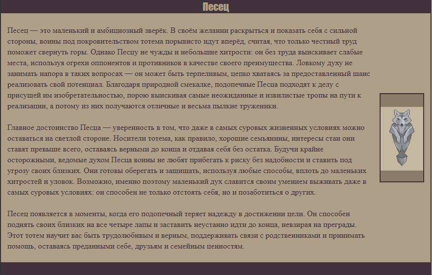 Привязанностьописание тотемамогли раньше знать как Трясохвостку, Светлого Источника, Ясноосень, Игрушку