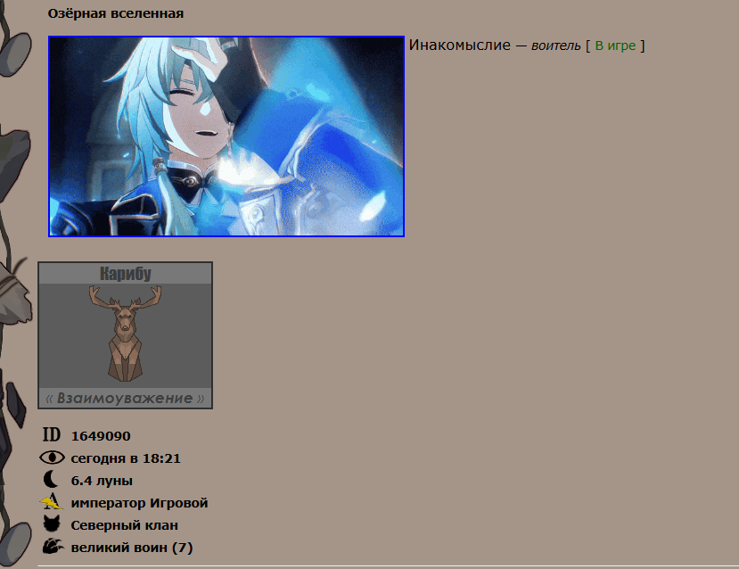 ![]() | ![]() | ![]() | __ [ ! ] Прочная ниша , .__ Закон гласит быть паиньками и ходить в пограничные патрули. __ __ обращения в чате могу не заметить, на лс вара с любым содержимым отвечаю быстрее всего. но! ролевые животными не играю. совсем. неинтересно. __ __ благословения тоже не даю. вообще никак не взаимодействую с животными персонажами в буквенном формате. только картиночно. __ | ![]() |