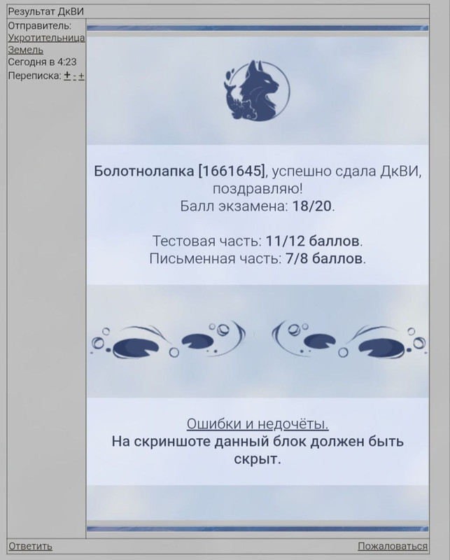 Родители: Отрава и Дух Цветения Обучил и наставил: Рванокрыл Похитительница моего Сердца✨