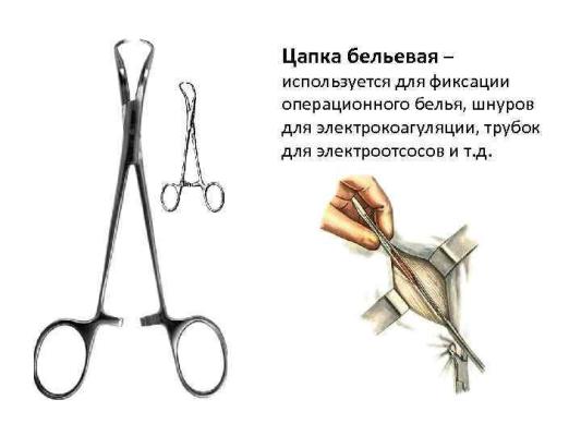 – хирургический инструмент, предназначенный для фиксации операционного белья вокруг раны, иногда вместе с салфетками для большей прочности.